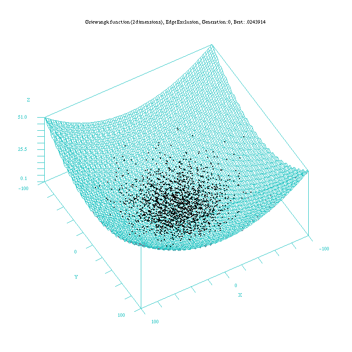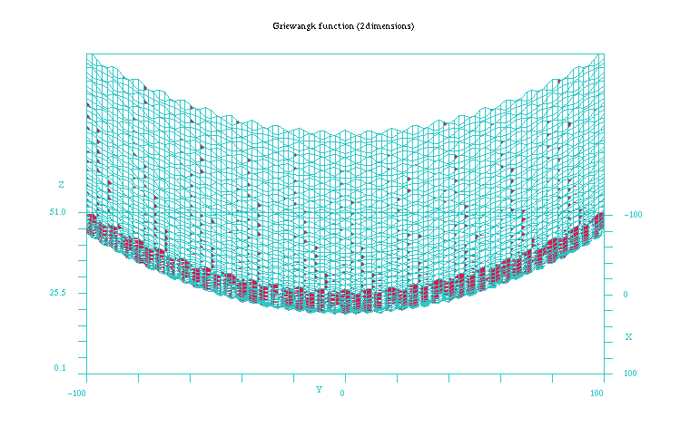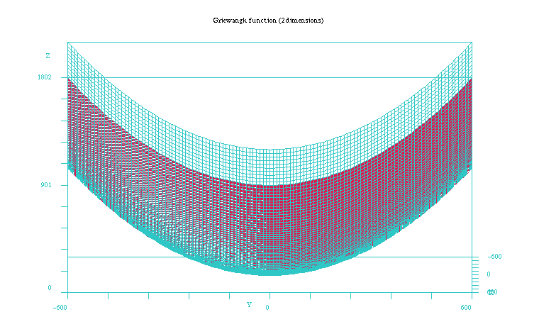 3 Example of the Griewangk problemThis is a minimization problem proposed in [Törn and Zilinskas 1989]. The fitness function is as follows: