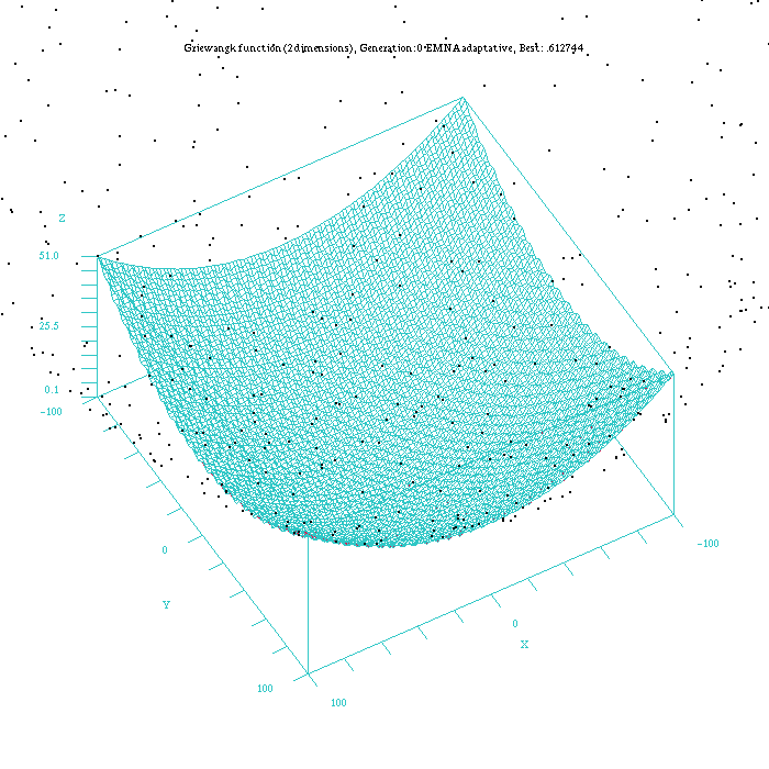 Figure 7: Plot of the EMNA-adaptative for the Griewangk funtion. Function computed with scilab.