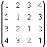double[][] p1={{1,2,3,4},{2,1,2,3},{3,2,1,2},{4,3,2,1}};