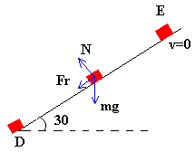 Calculamos el máximo desplazamiento D de la partícula a lo largo del plano inclinado