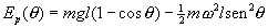 y su energía potencial será por tanto negativa Ec=- m w 2x2/2. La energía potencial inicial para x=0, se toma como Ec=0. Cuando el péndulo se ha desviado un ángulo q , el desplazamiento horizontal es x= l·senq . La energía potencial total de la partícula será la suma de ambas contribuciones Ep=Eg+Ec.