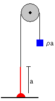 En esta página, se continua el estudio del movimiento de una cadena apilada sobre el suelo, uno de cuyos extremos cuelga de un hilo fino que pasa por una polea. El otro extremo del hilo está unido a un cuerpo, tal como se muestra en la figura.