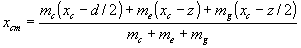 Si la masa del gas mg es igual a la masa del recipiente mc los centros de masas son equidistantes con la posición del c.m. del sistema aislado. Si son distintos las distancias son inversamente proporcionales a las masas mgxg+mcxc=0