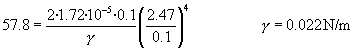 A partir de la medida del tiempo t, se despeja la tensión superficial g de la solución jabonosa. Ejemplo. Determinar la tensión superficial de una solución jabonosa, sabiendo que el tiempo que tarda en desaparecer una burbuja de radio r0=2.47 cm es de t=57.8 s. El capilar empleado tiene un radio R=0.1 cm y una longitud de L=10 cm. Dato, la viscosidad del aire es de h =1.72·10-5 kg/(m·s).