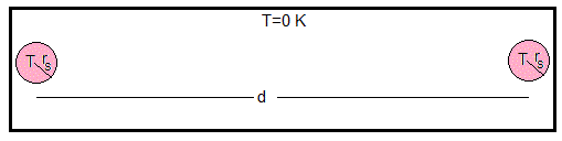 Consideremos dos esferas iguales de masa m, de radio rs situadas en el espacio exterior, en el interior de una caja cuyas paredes está a T=0 K (no emiten radiación).