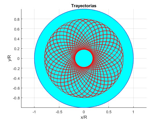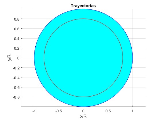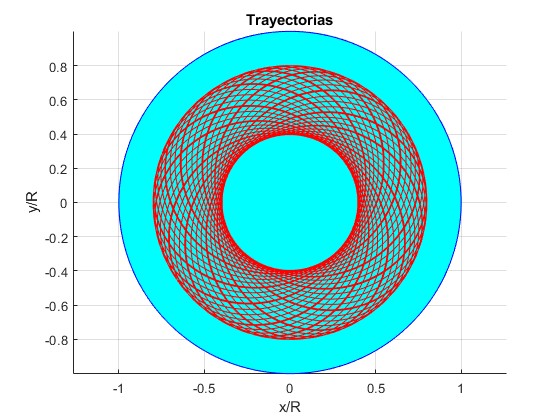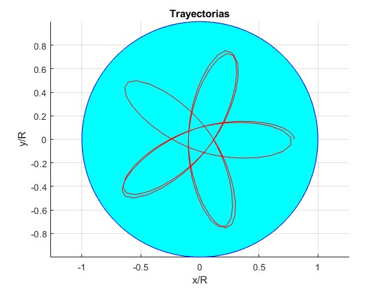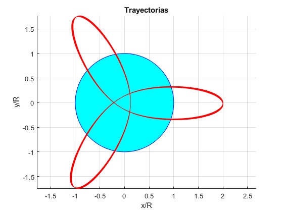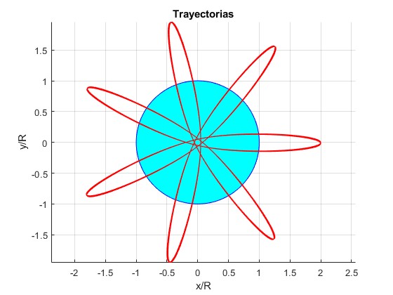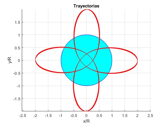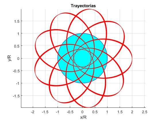 ode45 de MATLAB con las siguientes datos- Distancia inicial r0/R=4/5.