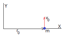 La partícula parte de la posición r0, θ=0 que es una posición de retorno (la distancia radial es máxima o mínima) dr/dt=0. El momento angular constante vale