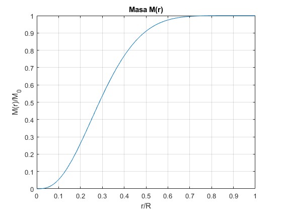 Donde M(r) es la masa de la estrella contenida en la esfera de radio r. Naturalmente, M(R)=M0 es la masa de la estrella.