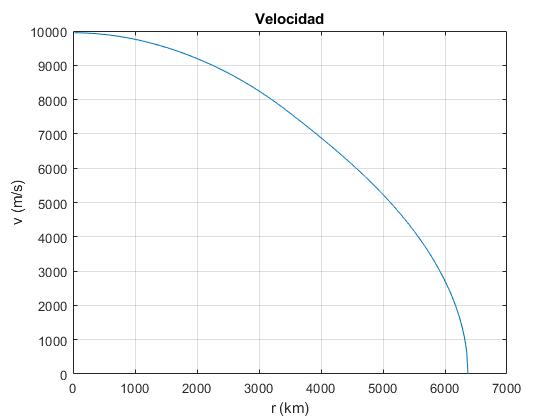 Calculamos la velocidad v en función en función de la distancia de la partícula al centro de la Tierra r. Utilizamos la función