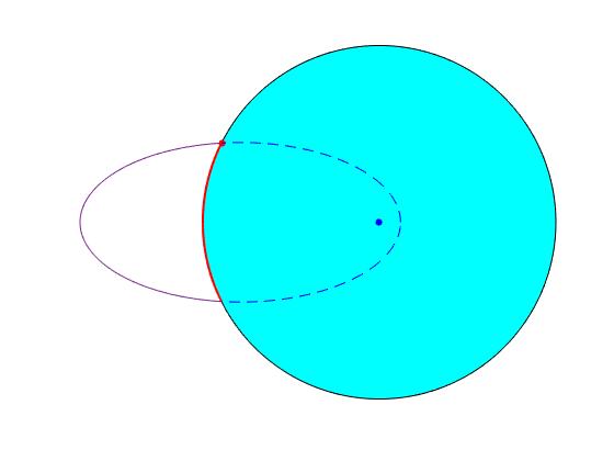 La otra solución, ε=(1+sin(θ/2))/cos(θ/2), implica que la excentricidad ε>1, la trayectoria, por tanto, no es elíptica