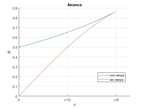 La longitud lm de la rampa que produce alcance R máximo es