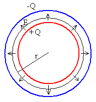 - Para r>b, la superficie esférica de radio r, contiene una carga, q=+Q-Q=0, y E=0