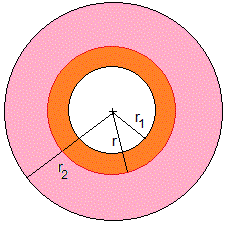 - El campo eléctrico, en las regiones r<r1, r1<r<r2, r>r2