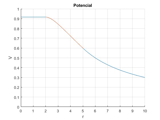 Para r<r1. El campo eléctrico es nulo, el potencial es consatnte
