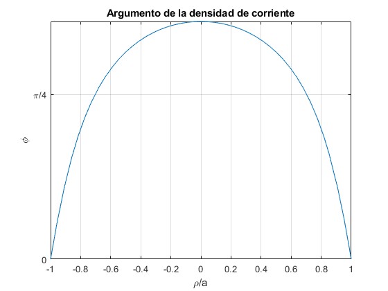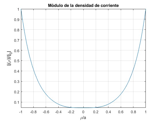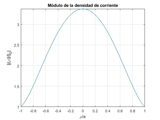 La densidad de corriente j0 en la superficie del cable, ρ=a es