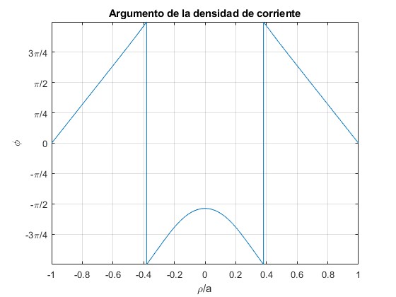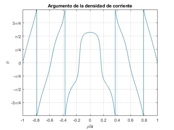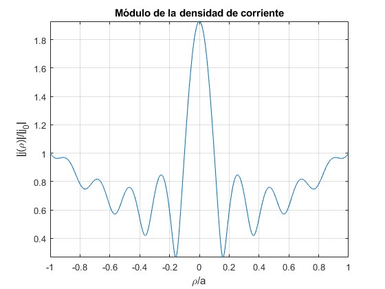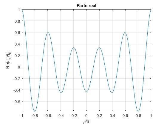 Representamos la parte real de la densidad de corriente en función de ρ/a