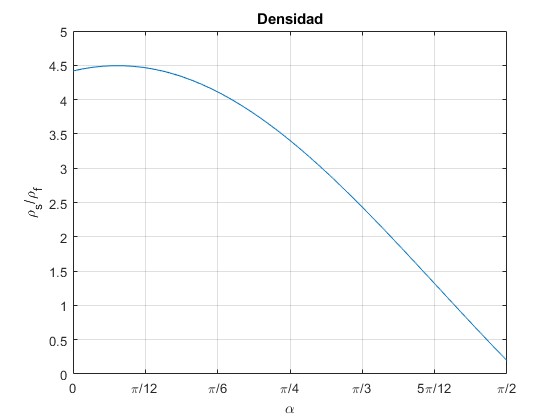 La densidad relativa ρs/ρf es una función del ángulo α