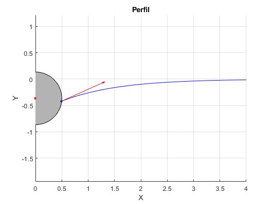 Representamos el perfil de la superficie del líquido en las proximidades del cilindro