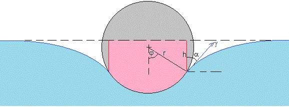En este caso, no disponemos una relación entre H y α por lo que hemos de resolver la ecuación diferencial que determina la forma de la superficie del líquido en las proximidades de la esfera