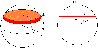 Volumen de un casquete esférico, comprendido entre z0 y r