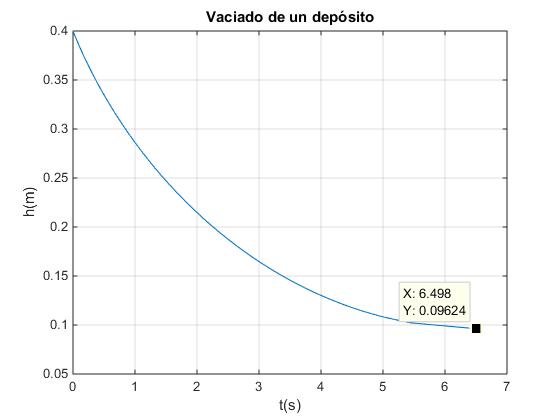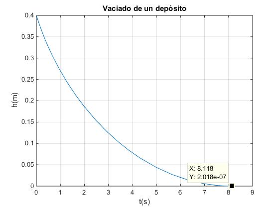 title('Vaciado de un depósito')