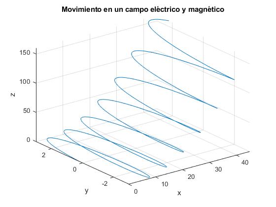 Supongamos que el campo magnético tiene la dirección del eje Z, el campo eléctrico la dirección del eje Y . La partícula cargada parte de la posición inicial (x0, y0) con velocidad inicial (v0x, v0y)