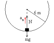 Hallar la reacción en la posición B (punto más bajo de la trayectoria circular) D (punto más alto de la trayectoria circular).
