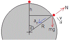 ¿En qué punto θ la partícula dejará de tener contacto con la superficie esférica?. Supondremos que no hay rozamiento entre la partícula y la superficie esférica sobre la cual desliza.