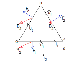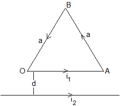 9.- Una espira en forma de triángulo equilátero de lado a es recorrida por una corriente de intensidad i1.