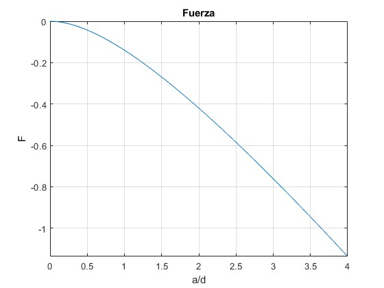 Calcular la fuerza que ejerce el campo magnético producido por la corriente rectilínea indefinida de intensidad i2 sobre cada uno de los lados de la espira