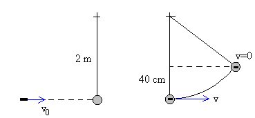 contra un saco de 4 kg suspendido de una cuerda de 0.5 m de larga y en reposo.