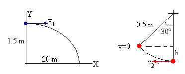 trayectoria, punto B, se produce un choque perfectamente elástico con otra masa m2=25 kg, que se encuentra en reposo en esa posición sobre
