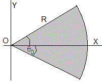 9.- Calcular la posición del centro de masa de una placa homogénea cuya forma es un sector circular de radio R y ángulo 2θ 0