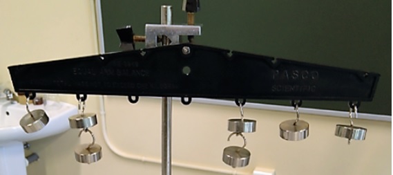 La primera experiencia consiste en colgar pesas de una barra hasta lograr el equilibrio