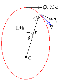 Como vemos en la figura, dicho objeto, lleva una velocidad ω·(R+h)·cosλ , y tiene por tanto, un momento angular
