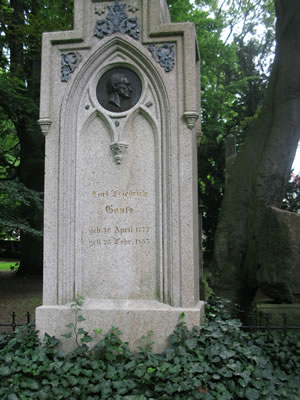Tumba de Carl Friedrich Gauss en Göttingen (Alemania). Busto de Gauss en la Universidad (Alte Aula)