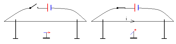La experiencia de Oersted como se ha mencionado, fue fundamental en la historia del electromagnetismo. También la podemos considerar como la precursora de los aparatos de medida de la corriente eléctrica. Se coloca una aguja imantada debajo de un hilo conductor por el cual circula una corriente cuya intensidad se desea medir. El hilo conductor y la aguja están alineados con la dirección norte-sur cuando no pasa corriente por el conductor (figura de la izquierda). La desviación de la aguja constituye una medida de la intensidad de la corriente que circula por el hilo conductor (figura de la derecha).