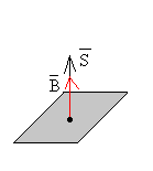 Se representa en color negro, el vector superficie S, que que es proporcional al número de espiras N, y en color azul el vector campo B, cuyo módulo y sentido va cambiando con el tiempo.