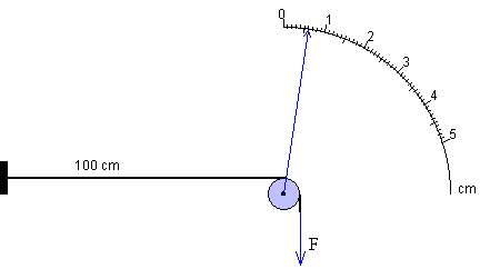 La lectura en la escala graduada semicircular es s=1.19 cm, que corresponde a una deformación de ΔL=1.19 mm.