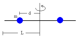 Sea una varilla de masa M y longitud L, que tiene dos esferas de masa m y radio r simétricamente dispuestas a una distancia d del eje de rotación que es perpendicular a la varilla y pasa por el punto medio de la misma. |