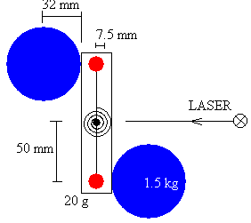 SaiakuntzaPrograma interaktiboak, zorizko zenbaki bat asmatuz, tortsio-hariaren K konstantea erabakitzen du tarte logiko baten barnean. Berria botoia sakatu. Tortsio-pendulua hasierako oreka-posizioan kokatzen da: horri deitzen dio "zero" posizioa. Hasi botoia sakatu. Esfera handiak lekuz aldatzen dira, justu aurkakora, eta tortsio-pendulua oszilatzen hasten da oreka-posizio berriaren bila. Zenbait minuturen buruan bertan geldituko da. Neur bedi oszilazioen P periodoa, hariaren tortsio-konstantea kalkulatzeko, eta argiaren amaierako oreka-posizioa: xf . Gainontzeko datuak finkoak direnez (b,d,M,L), bi datu horiekin grabitazio unibertsalaren G konstantea kalkulatzen da. |