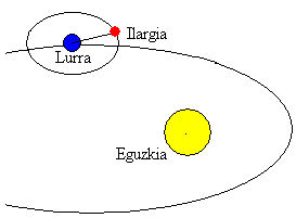 handiagoa da, edo bestela esanda, Ilargiak Lurraren inguruan duen orbitaren