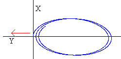 Bi ardatzetan, Y' zein X' , distantziak kilometrotan adierazita daude. Ibilbidea modu egokian ikusi ahal izateko, ardatzen eskala alda daiteke, eta ondoren Hasi botoia berriro sakatu. |