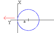 Ontzitik jaurtitzen den gorputz bat nola mugitzen denDemagun ontzi espazialetik gorputz txiki bat jaurtitzen dela, u abiadura erlatiboaz eta α angelua osatuz norabide erradialarekiko, alegia X' ardatzarekiko, baina orbita zirkularraren plano berean.