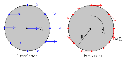 Buztinaren hasierako abiaduraSolido zurrunaren ikasgaian higidura mota hau zehazki aztertzen da: gurpilak irristatu gabe errodatzen badu, bi higidura sinple ezberdinen gainezarketa da: