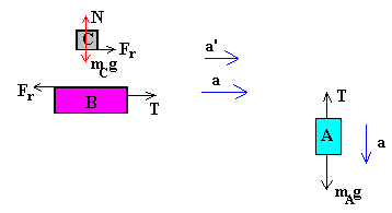 | Orri honen helburua da irudiko hiru blokeek osatutako sistemaren mugimendua zehatz-mehatz aztertzea. A blokea haritik eskegita dago eta hariaren beste muturra B blokean lotuta. B blokeak plano horizontalean irrist egin dezake marruskadurarik gabe. Poleak eta hariak dituzten masak arbuiagarriak dira blokeen masen aldean. B blokearen gainean C blokea kokatzen da. B eta C blokeen artean badago marruskadurarik.