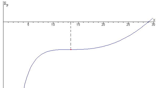 Sistemaren portaera deskribatzen du kurbaren AB zati urdinak, alegia oreka egonkorreko posizioak. Energia potentzialaren grafikoa irudikatzen bada: