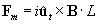 Hemen B, eremu magnetikoa da, L, eroalearen luzera, eta ut korrontearen noranzkoa duen bektore unitarioa. Eremua eta korronte-elementua perpendikularrak direnean, indarraren modulua hau da: Fm=iLB. Eta indar magnetikoaren noranzkoa, Fm , irudian erakusten dena kasu ezberdinetarako: |