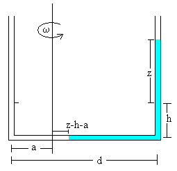 Manometroaren ω abiadura angeluarra handitzen den heinean, likidoaren z altuera handituz doa urrutiko adarrean, ω2-rekiko proportzionalki, eta gutxituz doa hurbileko adarrean. Hain zuzen ω2-ren eta z-ren arteko erlazioa lineala da, hau da, funtzioa grafikoki irudikatzen badugu, zuzen bat aterako da. Limite bat dauka, izan ere, z=h denean, hurbileko adarreko likidoa desagertu egiten da, eta une horretako abiadura angeluarra maximoa da: