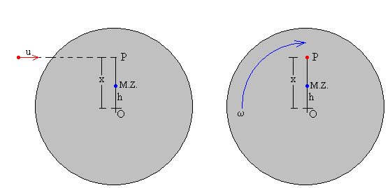 Kalkuluak errazteko, eman dezagun pala habe bat dela, M masaduna eta L luzeraduna, eta hasieran pausagunean dagoela. Bestalde, pilota partikulatzat har dezakegu, m masa eta u abiaduraduna, eta pala jotzen duela bere zentrotik x distantziara. Pala aske dago, alegia, ez dauka inolako loturarik.